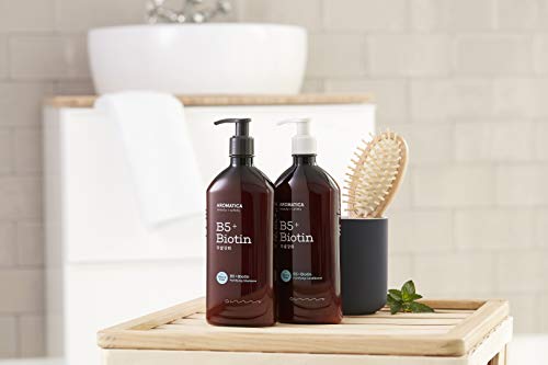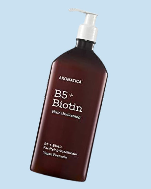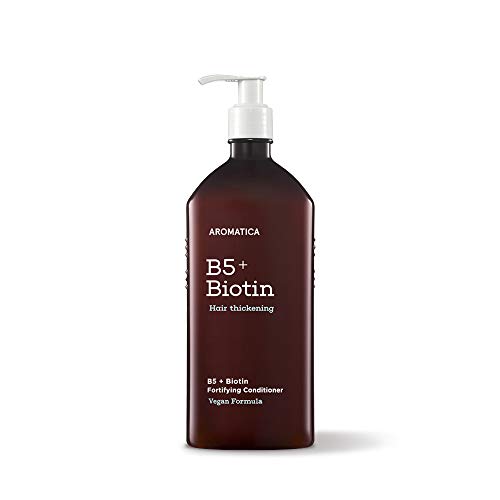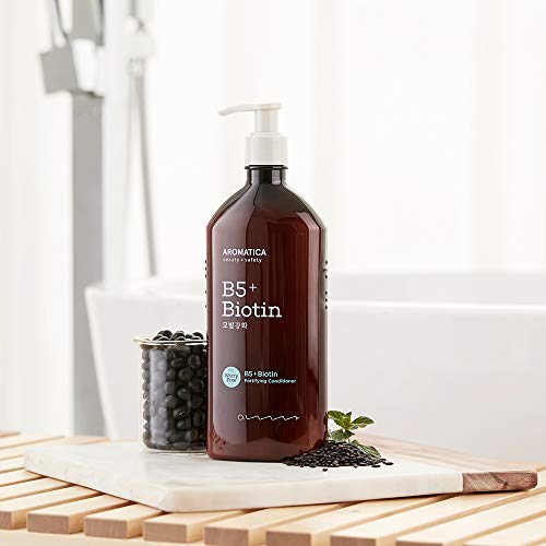 ‘B5+Biotin’ – ultimate hair nutrition for weak hair. B5+Biotin Fortifying Conditioner makes your hair smooth and moisturized while providing maximum nourishment for strong and healthy hair. Instead of silicone oil, it consists safe plant-derived ingredients to keep your hair hydrated and soft. With natural plant-derived ingredients, B5+Biotin Fortifying Shampoo gently cleanses hair while providing nutrition for the scalp and hair roots. Instead of synthetic surfactants such as sulfates (SLS, SLES, ALS, ALES), cocamidopropyl betaine, and ethanolamines (MEA, DEA, TEA), only plant-derived ingredients are used to keep the scalp and hair healthy. Vitamin B5 (Pantothenic acid), Pro-vitamin B5 (Panthenol), and Biotin provide nutrition for strong hair roots and healthy hair. Pantothenic acid, an essential nutrient for healthy hair, nourishes the hair follicles and hydrates the scalp. As a vitamin B5 derivative, Panthenol provides excellent moisture retention and protective barrier formation to make your scalp moisturized and hair radiant. Biotin is a water-soluble vitamin that makes your hair glossy and healthy by binding proteins to hair. Six different black food extracts, namely black beans, black rice, black sesame, mulberry, eggplant, and pepper seed, which are directly derived by AROMATICA, provide essential nutrients to make your hair moisturized and glossy while mandarin, chamomile, and spearmint add freshness. In particular, black soybeans are highly anti-oxidant and are known to be involved in the production control of hair follicle enzymes to help keep the scalp and hair healthy.